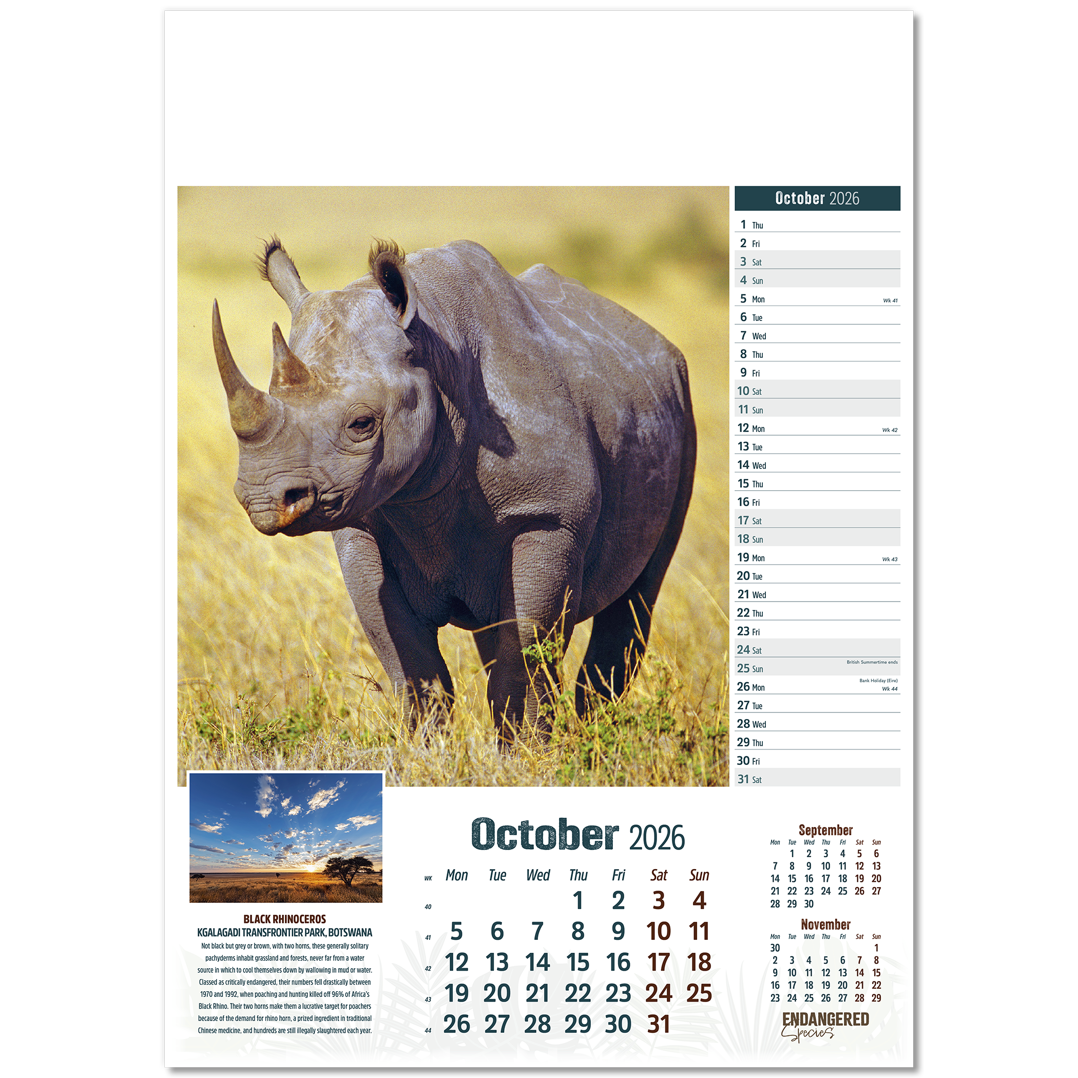 Endangered Species Wall Calendar