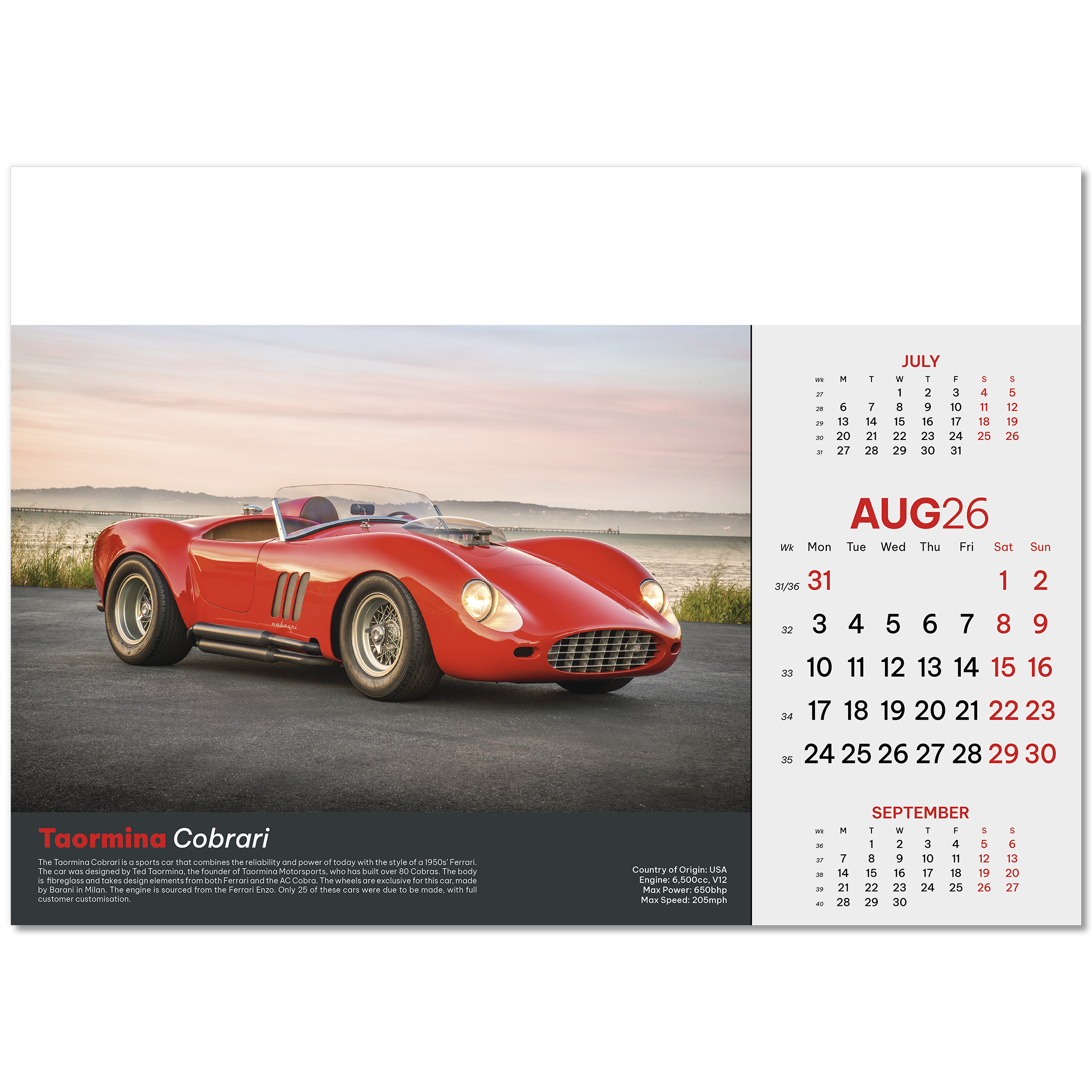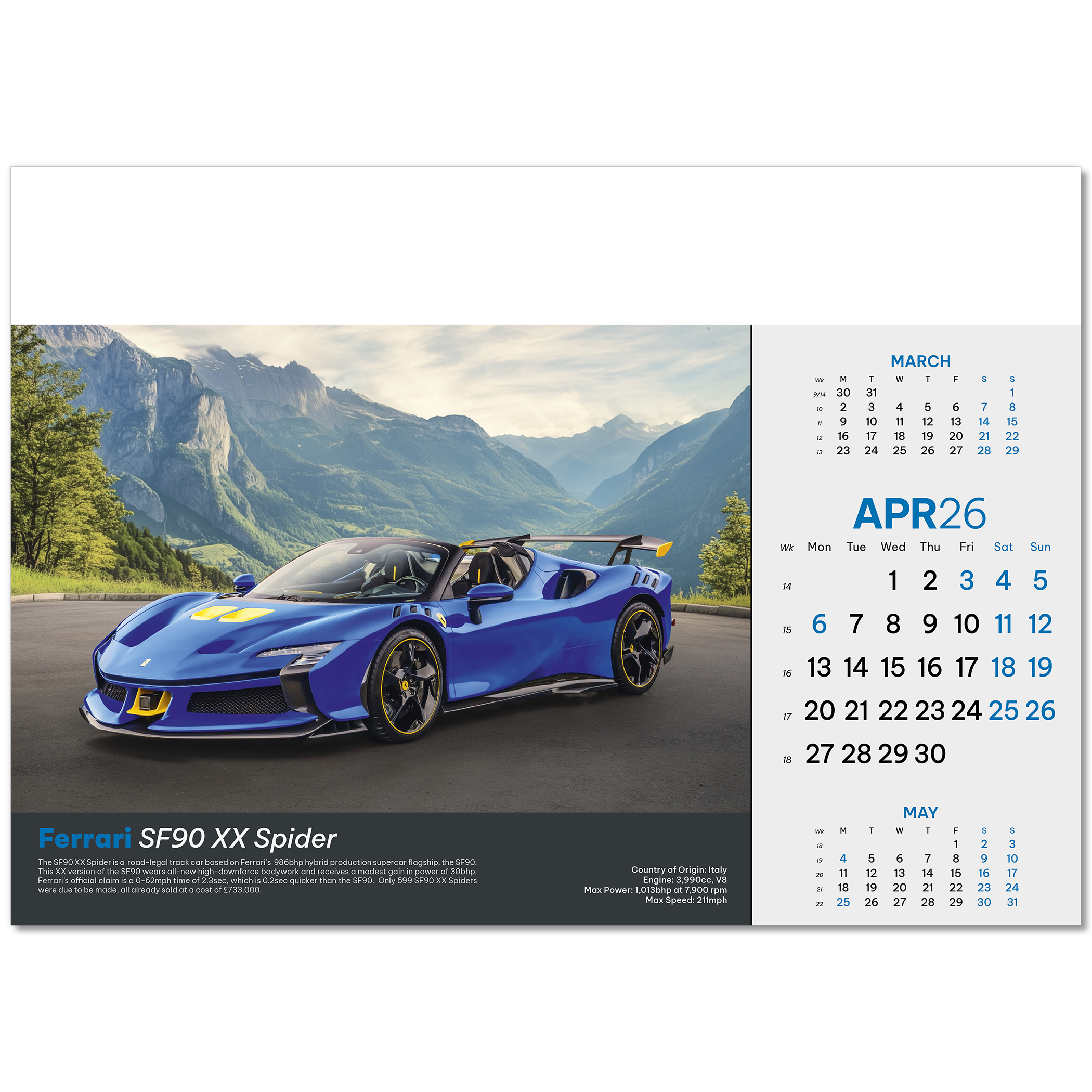Supercars Wall Calendar